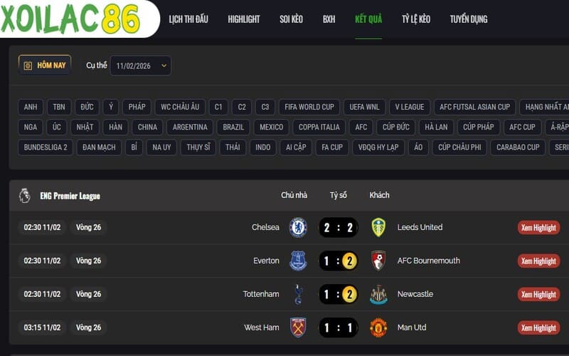 KQBD hôm nay: Xem Highlight bóng đá mới nhất tại Xoilac TV