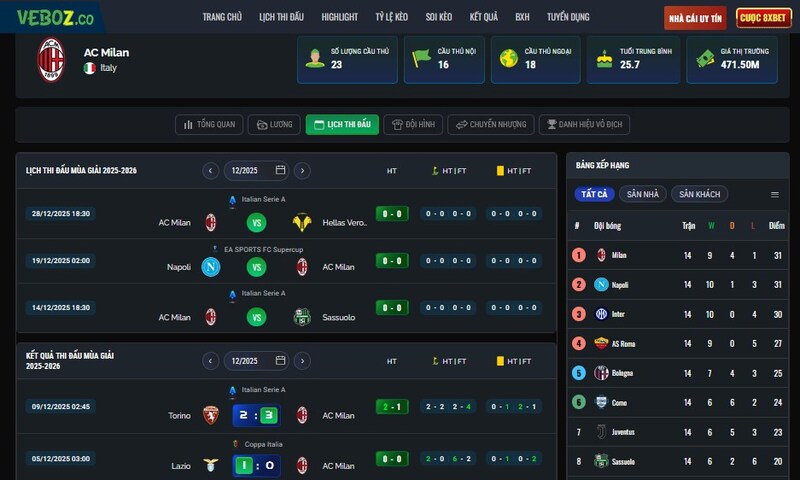 Đặc biệt là với anh em thường xuyên xem bảng xếp hạng bóng đá Ý, Vebo TV cập nhật nhanh và chính xác đến mức mình gần như không cần phải dùng thêm nền tảng nào khác.