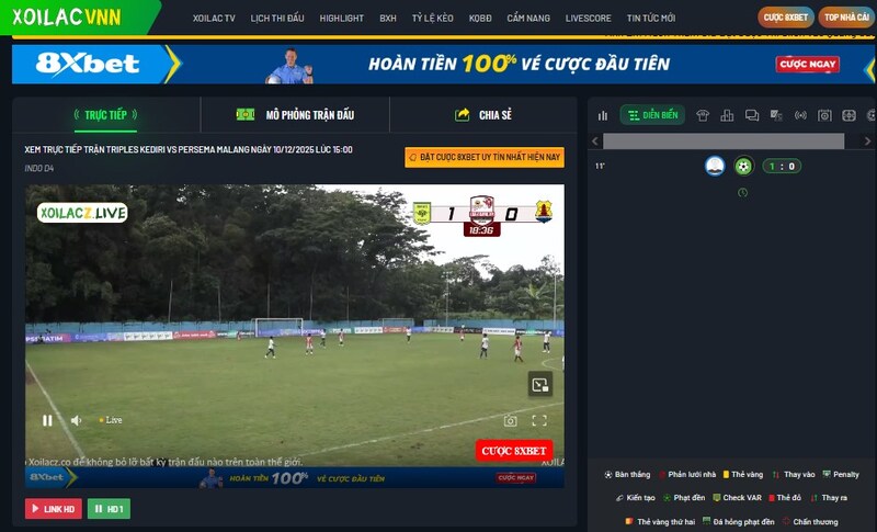 Kết quả thì cực kỳ nhanh. Nhiều hôm mình bận không xem được trực tiếp, chỉ cần vào Xoilacvn là biết ngay tỷ số, danh sách cầu thủ ghi bàn, thẻ phạt và cả diễn biến chính nếu lỡ trận.